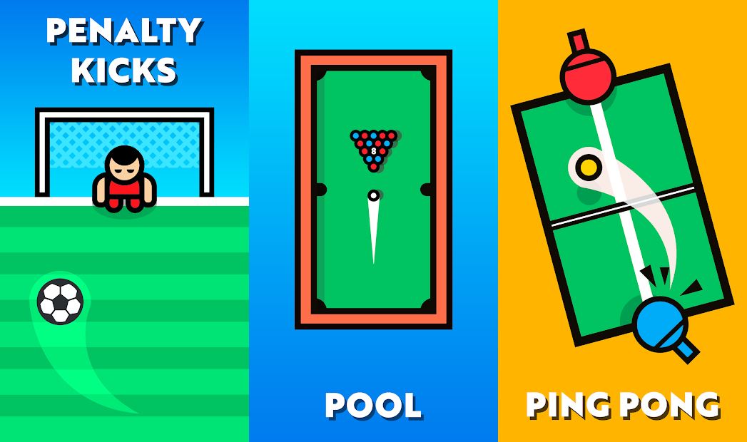 如果您想与朋友在同一台设备上玩,这是正确的游戏!而且,如果您没有朋友可以在一台设备上玩多人游戏,那就独自对着AI玩吧!通过2个玩家游戏集合向您的朋友挑战,并享受迷你游戏的精美图形!