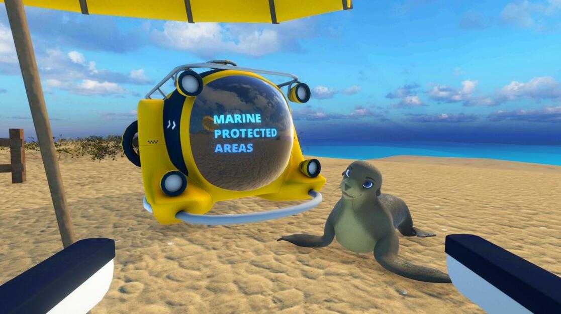 在 VR 体验中,学生将与名为 Marina 的动画海狮一起乘坐 Save Our Shores 潜艇进行有趣的教育之旅,观察加州中部和南加州海岸线沿线海洋保护区 (MPA) 中的各种物种并与之互动。