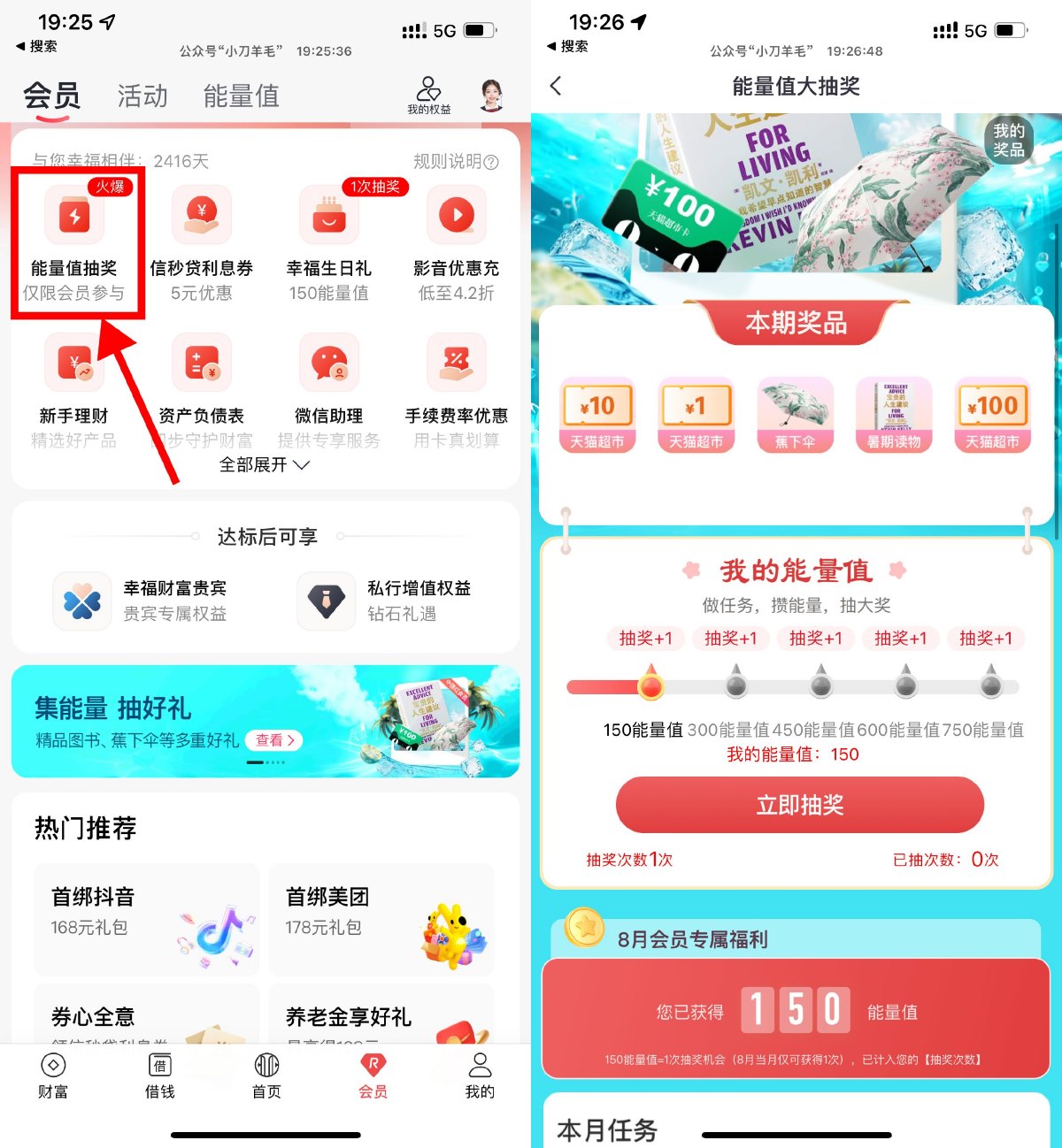中信银行APP底部“会员”->能量值抽奖->简单浏览次日发放能量值,每150能量值抽实物或立减金